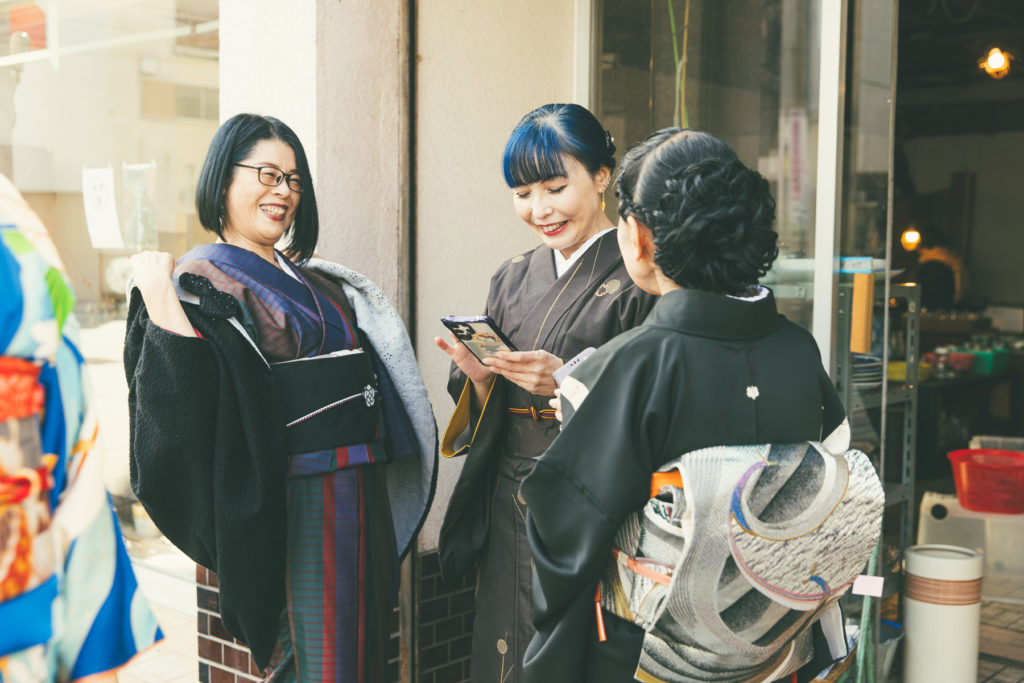 三宅さんに大門タウンの家賃のお支払いと、先日のキモノイベントで撮った三宅さんの写った写真をプレゼント。